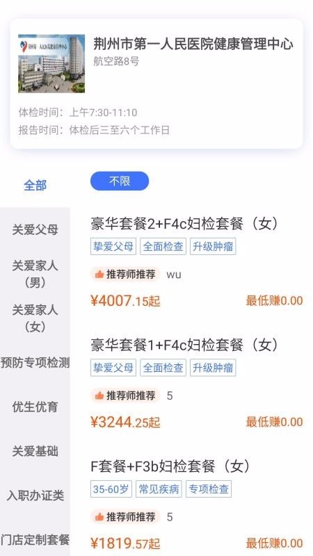 3、平台上面将不同的健康服务分为了套餐,让大家能够根据标签选择。