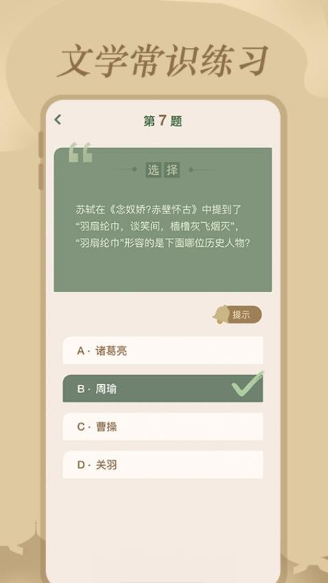 5. 每日一题:App会定期推出文学知识问答,检验用户的文学素养。