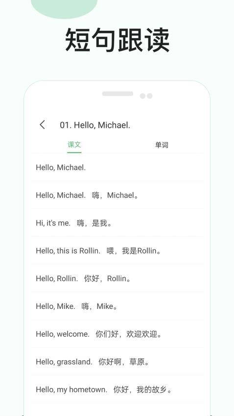 3. 发音练习:提供标准的英语发音示范,用户可以通过跟读和模仿,提升口语发音水平。