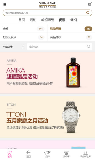 3. 积分奖励:购物过程中,用户可以获得积分,积分可抵扣现金或兑换礼品。