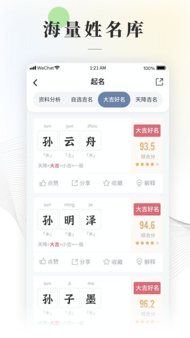 4. 界面简洁、操作便捷,方便用户快速找到满意的名字。