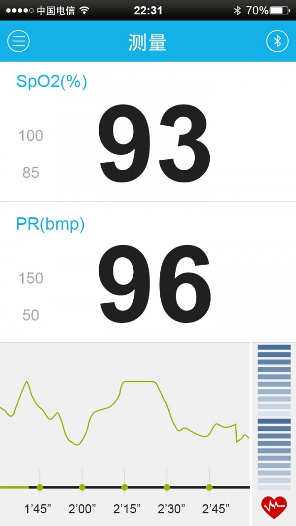 1. 实时监测:通过连接智能血氧仪设备,App能够实时显示用户的血氧饱和度、脉率和灌注指数等数据。