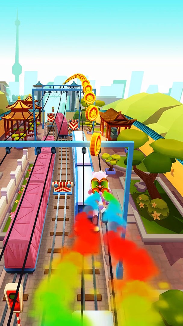 1. 玩家需要在地铁线路上奔跑、跳跃、滑行,尽可能多地收集金币和道具。