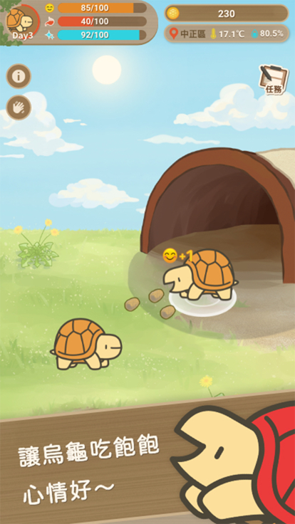 3. 完成任务:完成任务可以获得丰厚的奖励和经验值,有助于提升小乌龟的能力和等级。