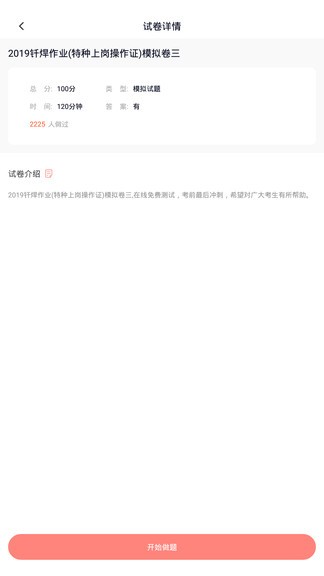 焊工考试软件是一款专为焊工从业者设计的在线学习与考试应用。这款软件集合了丰富的焊工知识题库、实战模拟考试、个性化学习路径以及详尽的考试分析等功能,帮助焊工从业者系统地提升技能水平,顺利通过各类焊工考试。