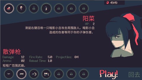 1. 游戏开始时,玩家需要选择一种武器和一种道具,然后进入战斗场景。