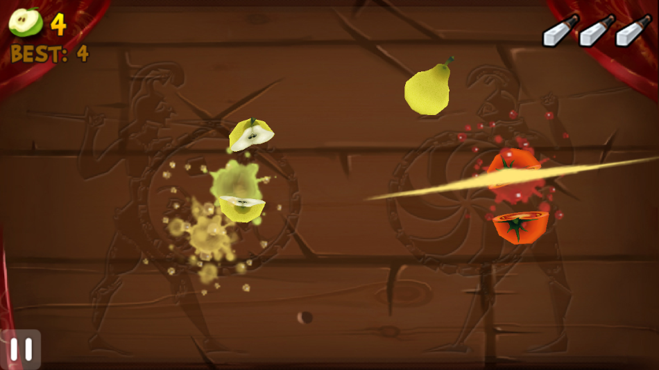 2. 尽量切割更多的水果,但要注意避开障碍物,避免游戏结束。