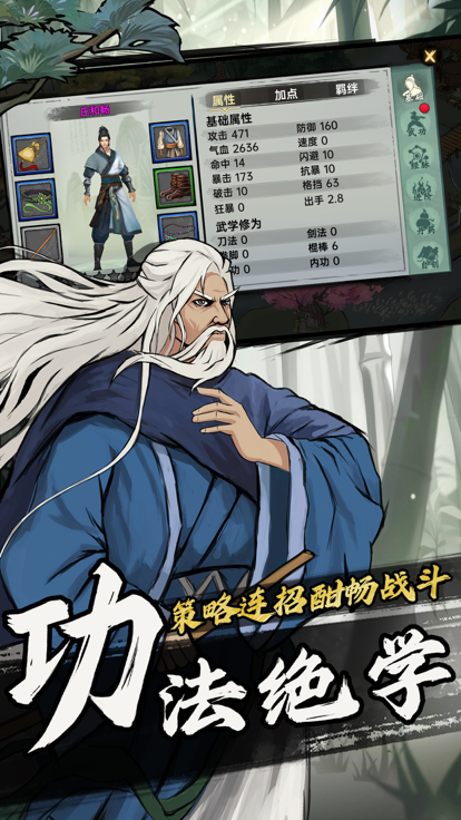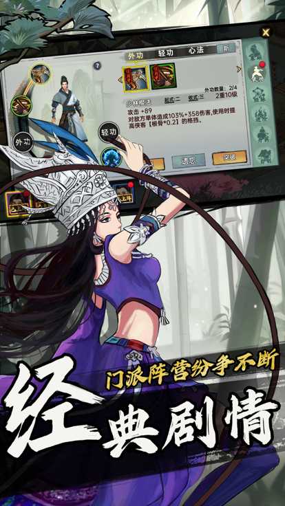 2. 多样化的武侠技能:游戏提供丰富的武侠技能供玩家学习,包括内功、外功、轻功等,玩家可根据自己的喜好和战斗需求自由搭配技能。