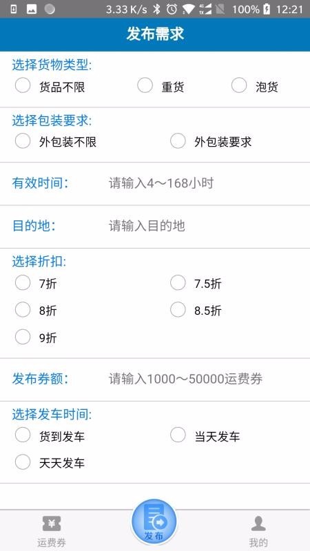 3.拥有两种发布运费券的方式,可以由发啥货平台发布或由专线发布;