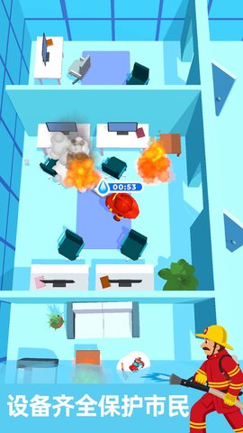 2. 丰富的消防装备:玩家可以解锁和升级各种消防器材,如消防车、灭火器、水枪等,提高灭火效率和救援能力。