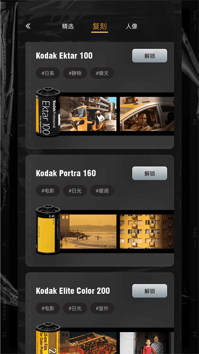 1. 独特的胶片效果:应用通过模拟胶片摄影的效果,让照片呈现出别具一格的色彩和质感,仿佛回到了胶片时代。