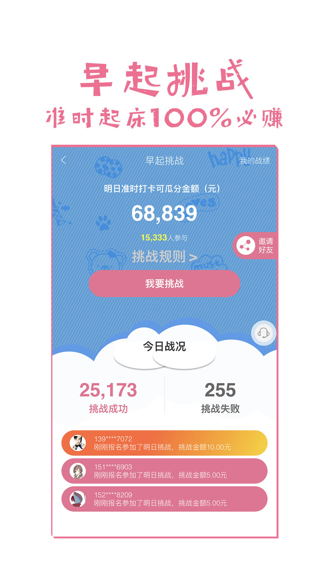 ③ 早起打卡挑战,准时起床完成打卡100%赚钱