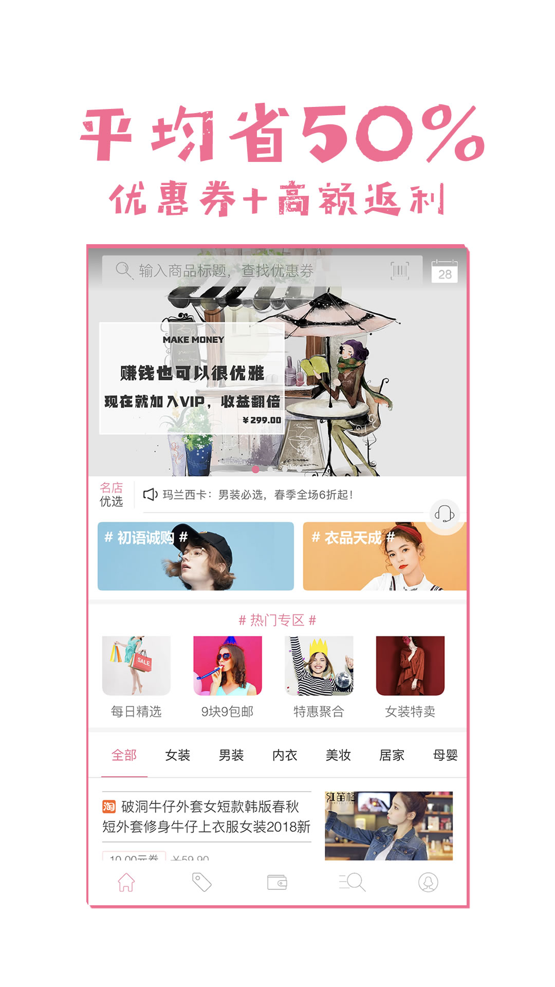 4.找优惠券就上淘淘赚,没有找不到,只有想不到,券后大量9块9的商品在等您来领,还包邮哦;