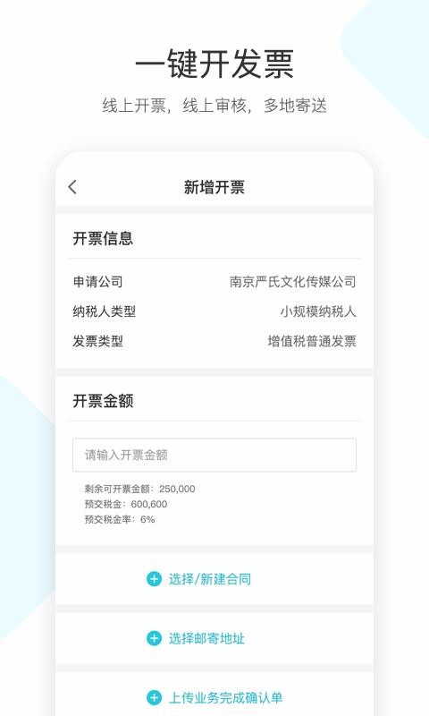 一键开票:点击之后就能为您快速的生成发票订单,便于用户快速使用;