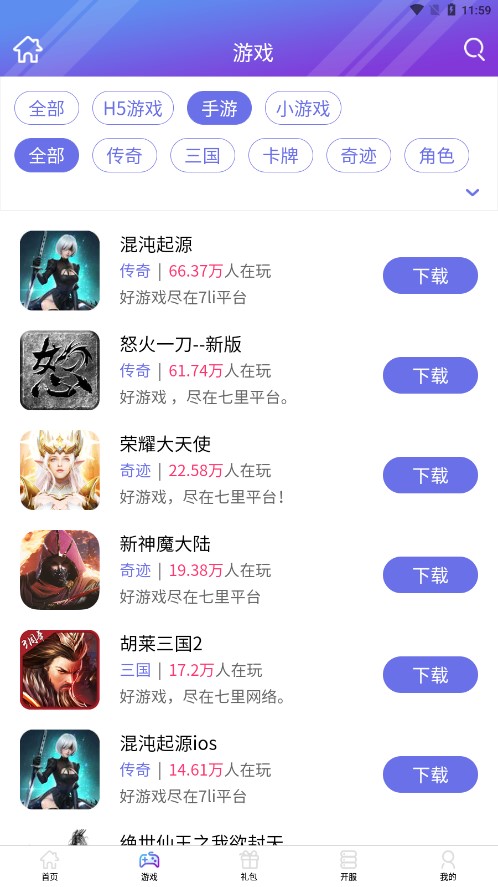 7li游戏app致力于为用户提供一站式的游戏下载、管理和更新服务。用户可以通过该应用轻松找到并下载心仪的游戏,同时,它还能自动检测并更新已安装的游戏,让用户无需手动操作,即可享受最新的游戏体验。
