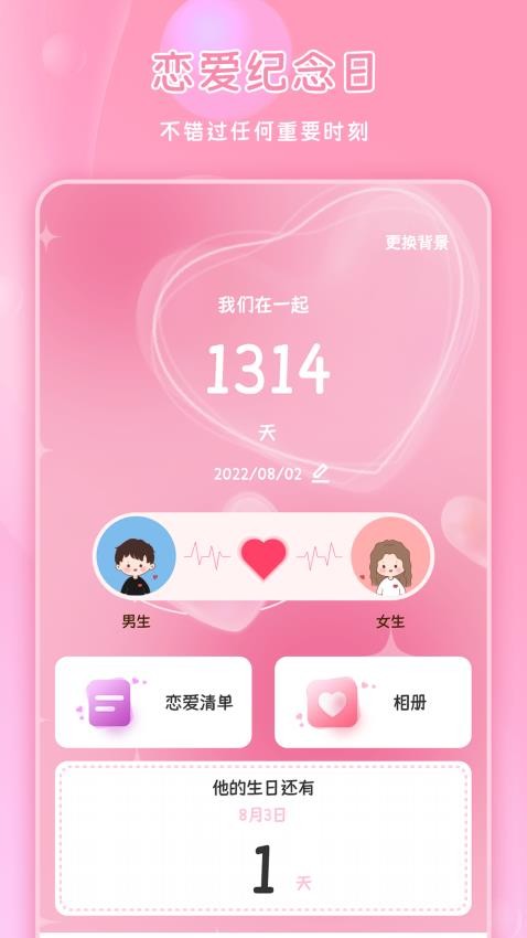 3. 个性化定制:丰富的主题和背景选择,让用户的纪念日记录更加独特。