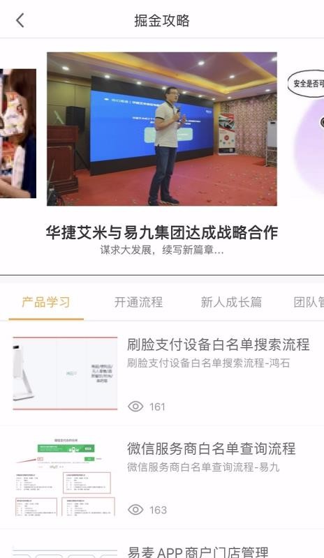 线上学习产品知识,还包含新人成长、开通流程介绍、团队管理等多类学习资源;