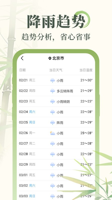 3. 个性化定制:用户可根据需求设置关注的城市,获取特定地区的天气信息。