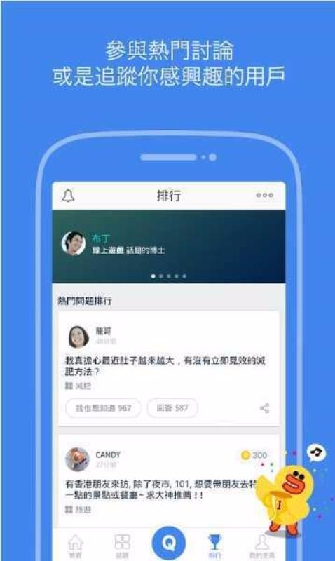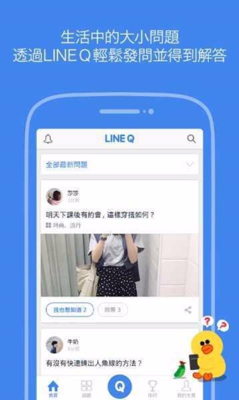 1.在LINE Q平台中所有问题都可以快速得到回答,你也可以帮助他人,参与答疑解惑;
