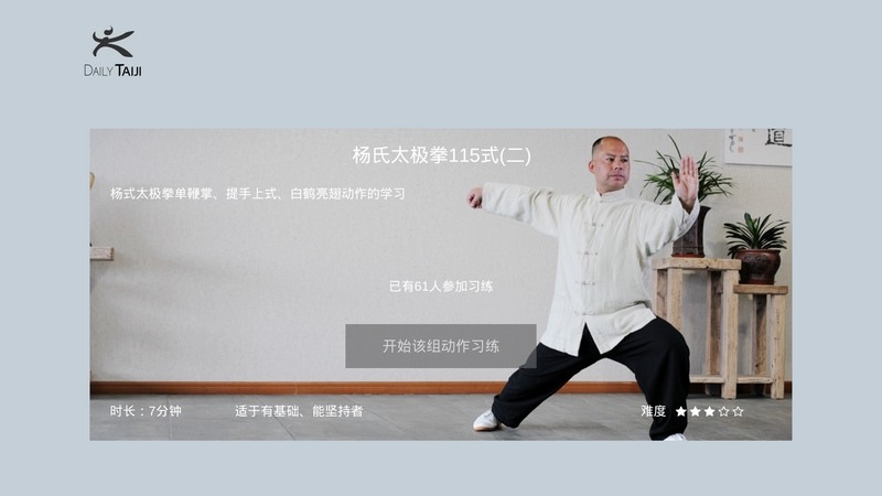 2. 名师指导:天天太极与众多领域顶尖名师签约,为用户提供专业、权威的太极教学指导。用户可以通过观看名师的教学视频,学习正确的动作要领和技巧。