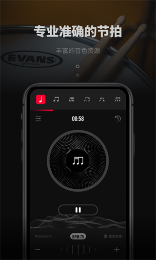 2. **丰富的音色资源**:软件内置了多种音效资源,用户可以根据需要选择适合的声源,使节拍学习更加有趣。