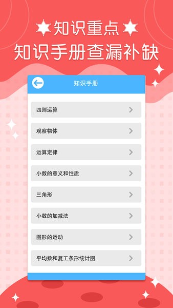 - 同步教材:四年级数学下册手机版的内容与人教版小学四年级下册数学课本完全同步,确保学生能够在家里与学校的学习无缝衔接。