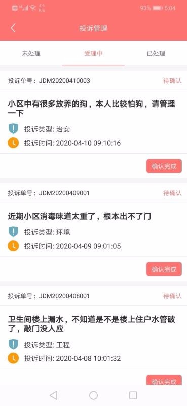 小区业主提交的投诉信息、报修处理信息等都能线上查看,很好的提升办公速度;