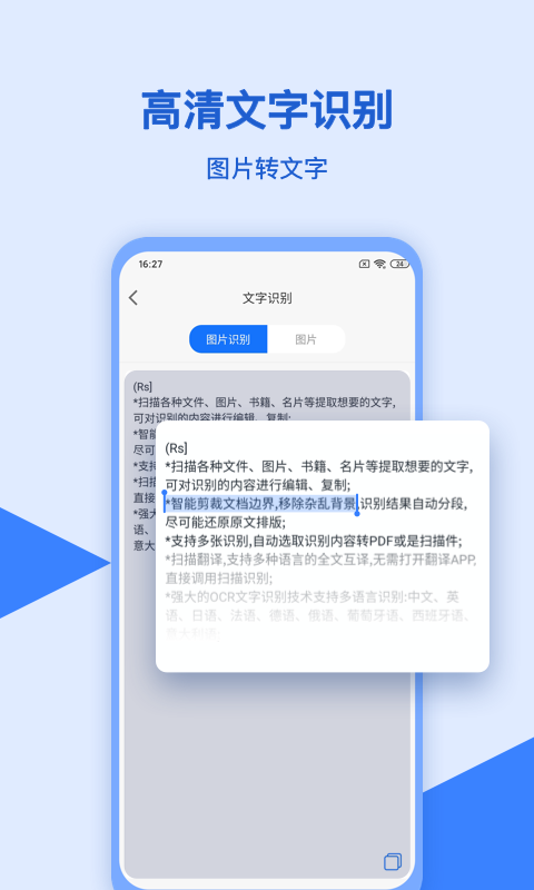1. 文字识别:通过OCR技术,扫描仪万能王能够高准确度地识别图片中的文字,并转换为可编辑的文本。