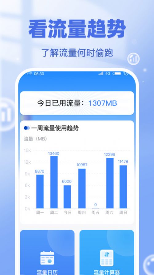 1. 流量监控:实时记录手机流量使用情况,包括各应用的流量消耗。