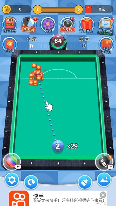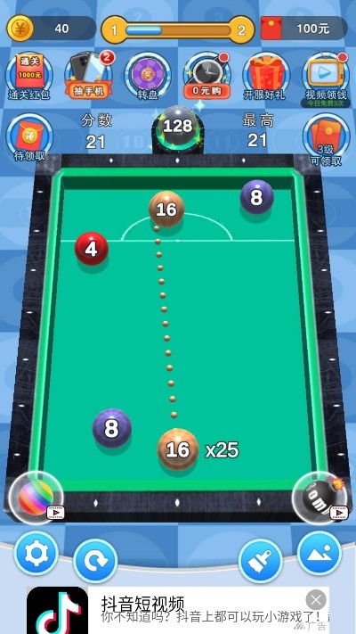 1. 仔细观察游戏局面,合理规划发射桌球的路径,以便更好地合成数字和碰撞红包球。