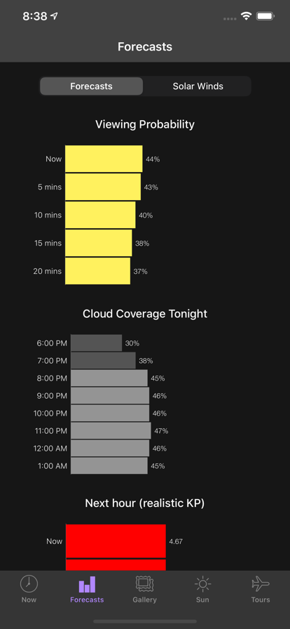 1. 极光预测:提供未来一小时、数小时和数周的极光活动预测,帮助用户提前规划观测时间。