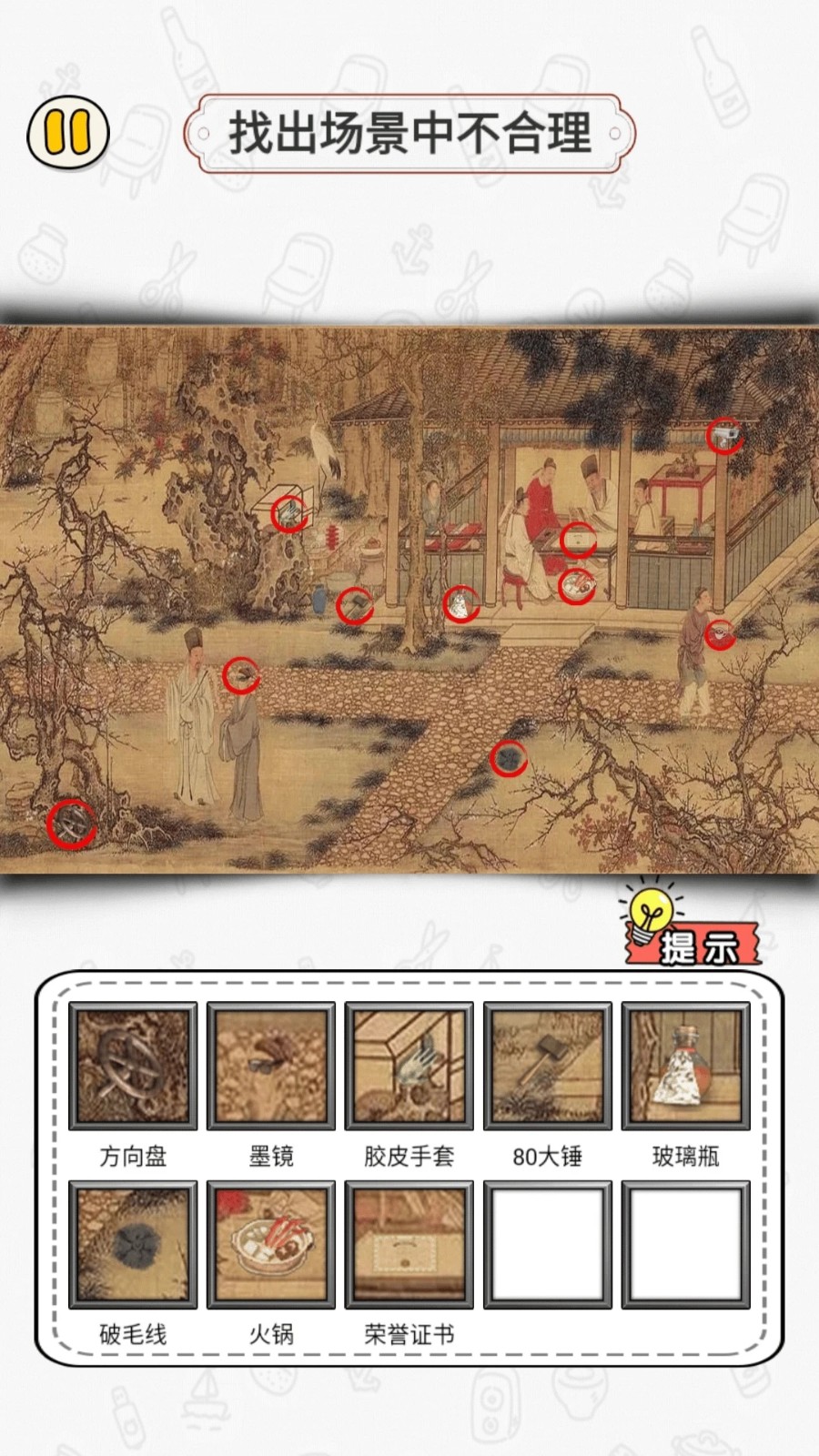 3. 道具系统:游戏中提供了多种辅助道具,如放大镜、提示等,帮助玩家更快地找到关卡中的不合理之处。