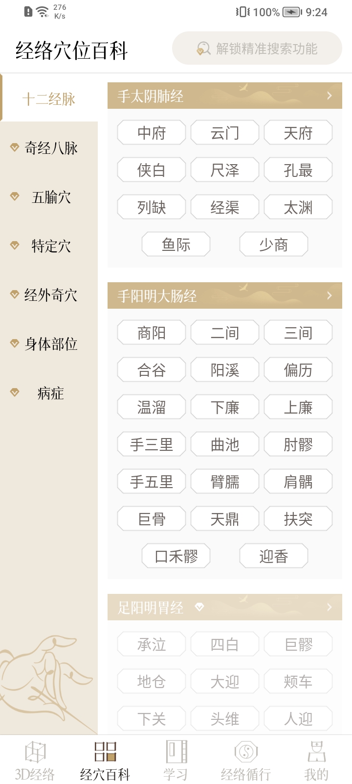 1. 利用搜索功能快速定位到感兴趣的经络或穴位。