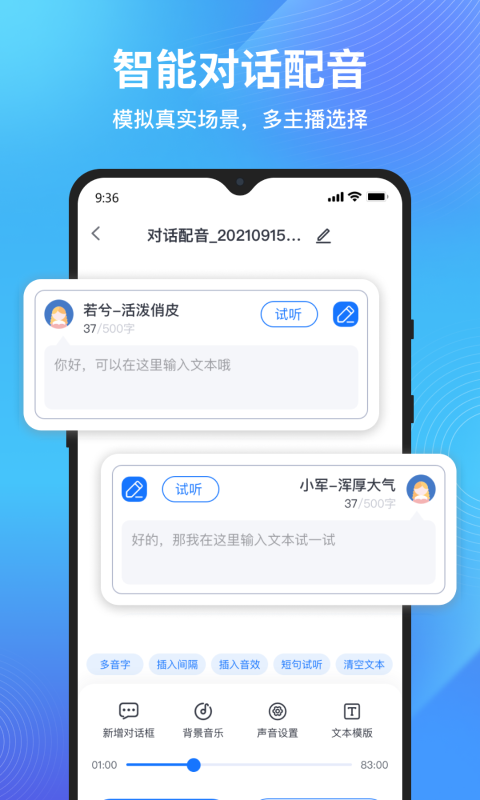 4. 配音编辑:提供强大的配音编辑功能,用户可以对配音作品进行剪辑、混音、变速等操作。
