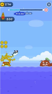3. 拾取金币和道具,提升咸鱼的能力和解锁更多内容。