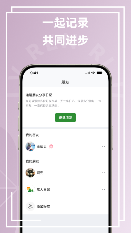 5. 邀请好友一起记录:邀请好友一起记录,快速统计和整理日记内容。