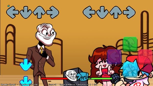 1. 故事背景:玩家将扮演BF(Boyfriend)角色,与知名歌手Mr. trololo展开一场别开生面的音乐对决。在游戏中,你将跟随Mr. trololo的经典歌曲节奏,通过快速点击屏幕上的箭头来释放能量,赢得比赛。