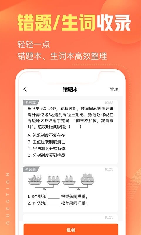 2. 错题本管理:自动收集用户搜索过的错题,支持分类整理和定期复习,巩固薄弱知识点。