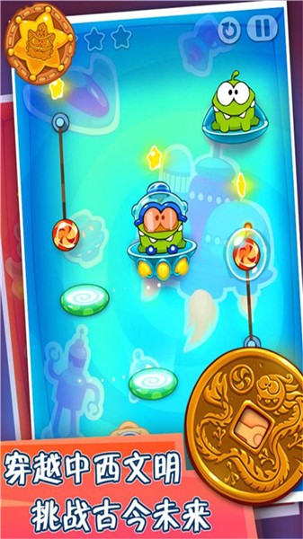 4. 角色与场景:游戏中的角色Om Nom形象可爱,表情丰富。游戏场景多样,包括森林、沙漠、雪山等多个主题,每个场景都有独特的视觉效果和背景音乐。