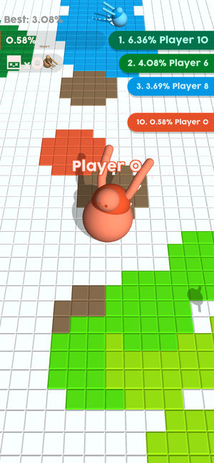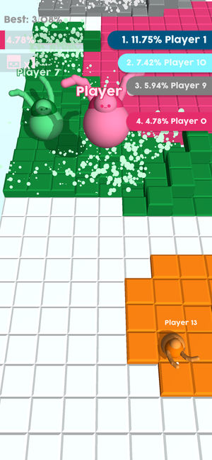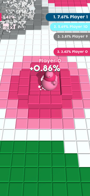 2. 操作方式:玩家通过屏幕上的虚拟摇杆或触摸控制角色移动,踩踏不同颜色的网格以改变其颜色。同时,还需注意躲避对手的攻击,保护自己的领地不被侵占。
