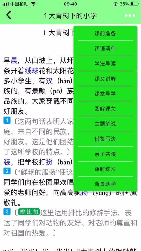 2. 课文朗读:支持课文全文朗读,配有专业配音,帮助学生纠正发音,培养语感。