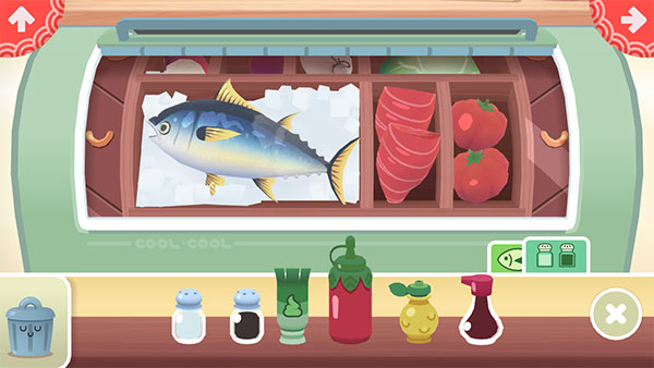 1. 食材选择:游戏开始时,玩家需要前往冰箱查看所有新鲜的食材。这些食材包括大米、金枪鱼、鳄梨、芦笋、鱿鱼、鲑鱼等,玩家可以根据自己的需要选择食材。