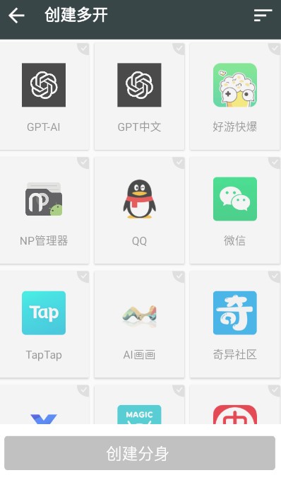 2. 创建分身:打开多开大师,选择需要多开的应用,点击“创建分身”按钮,即可生成应用的独立分身。