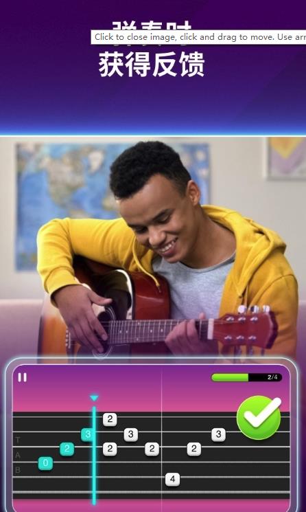 - 在练习过程中,应用会即时识别用户的演奏并提供反馈,帮助用户了解何时正确演奏或需要指导,从而快速提高吉他技巧。