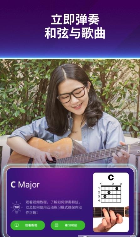 - 教授和弦弹奏、和弦转换、扫弦技巧等进阶内容,帮助用户提升吉他演奏水平。