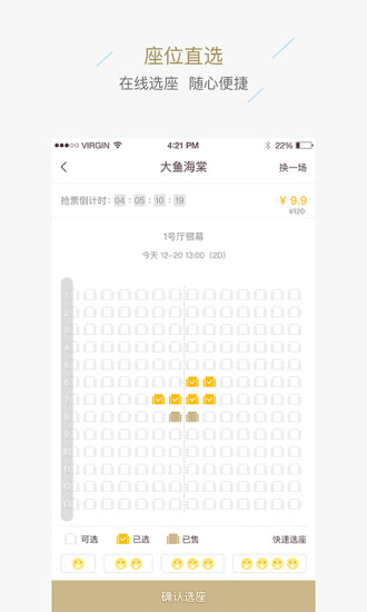 1. 在线购票与选座:支持在线选座购票,用户可以根据个人喜好和观影需求,自由选择影片、观影时间及座位,无需现场排队购票。
