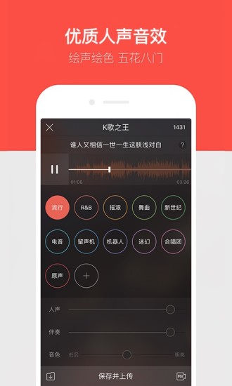 2. 音效处理:提供多种音效选择,包括一键修音、智能混音等,让用户的歌声更加动听。