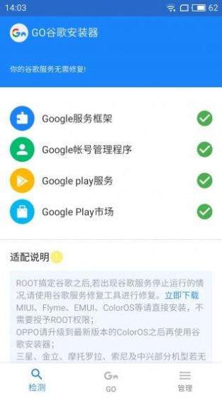 2. 启动并检测:打开软件,自动检测手机型号和系统版本,显示可安装的谷歌服务列表。