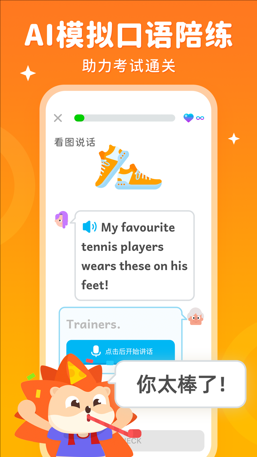 4. 口语练习:提供口语对话练习,用户可以与软件进行互动,模拟真实场景进行口语训练。