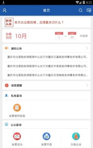 2. 办税服务:提供在线申报、在线缴款、税务咨询、发票领用等办税服务。